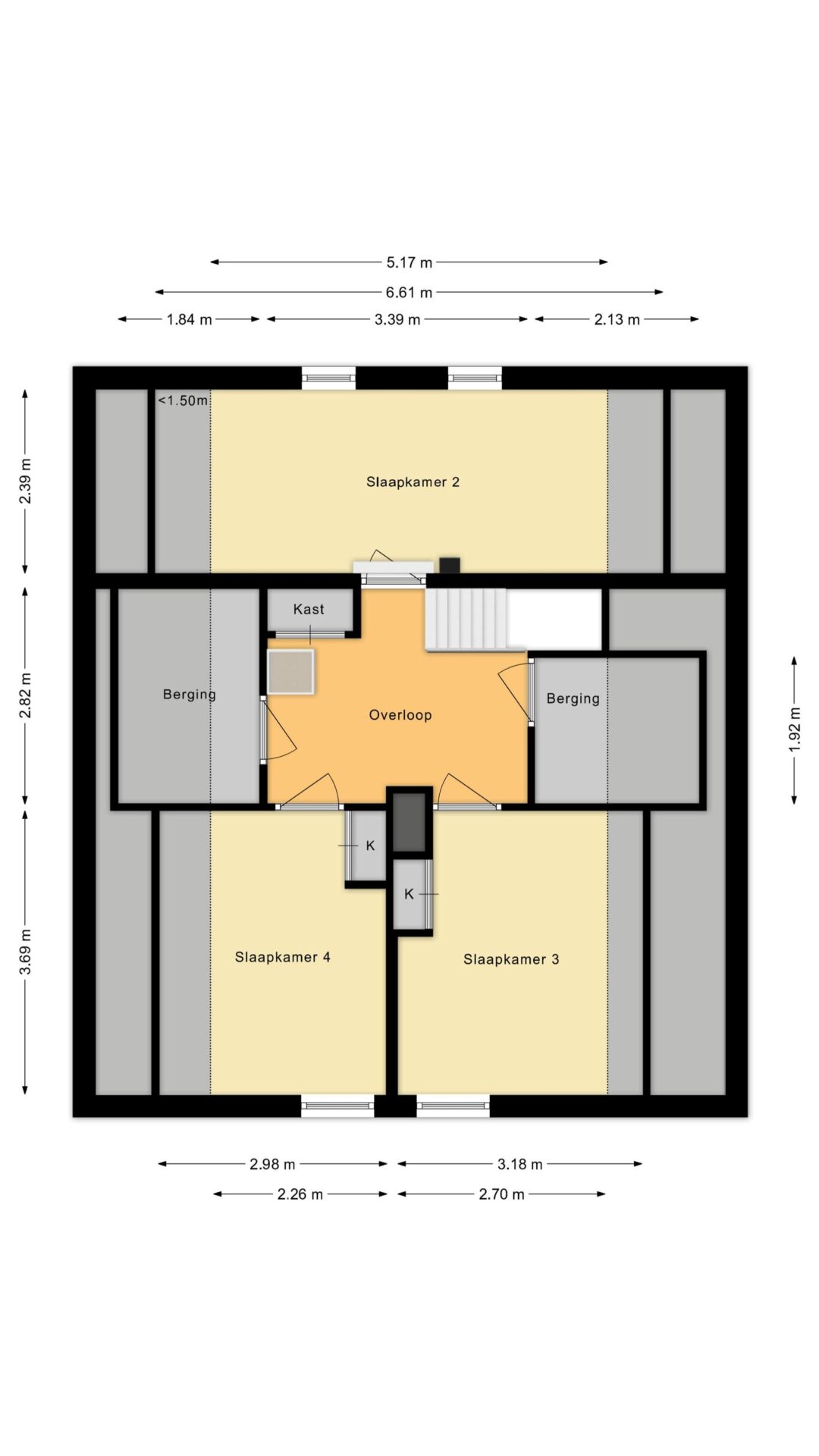 Royale overloop met toegang tot de drie slaapkamers.