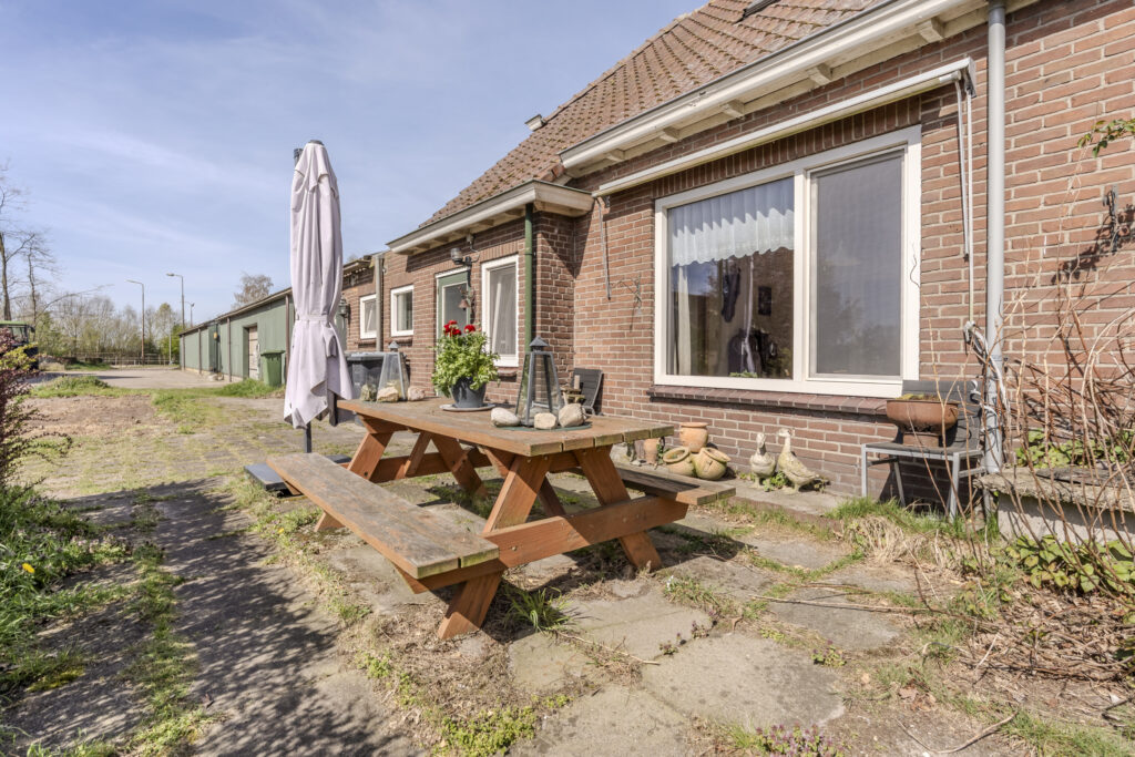 Naast de woning bevind zich een terras, waardoor er altijd een fijne plek is om van het buitenleven te genieten.